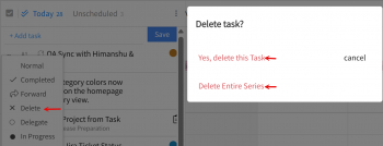 Enhanced Recurring Deletion: Added the ability to delete either a single occurrence or an entire series of recurring tasks